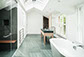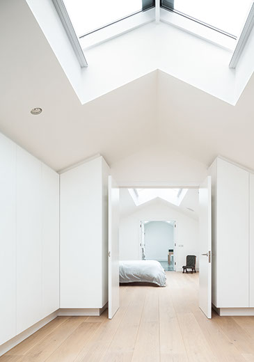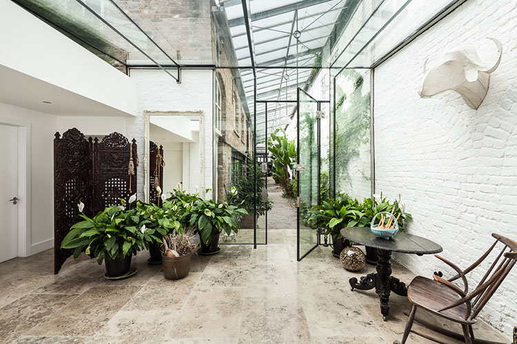 The 2 existing buildings were retained, and linked by a structural glass entrance and conservatory, with covered courtyard garden outside.
